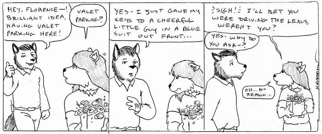 Keith: Hey, Florence—! Brilliant idea, having valet parking here!