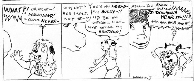 Kathy: He's my friend— my buddy—!! It'd be too weird... like... like dating my brother!